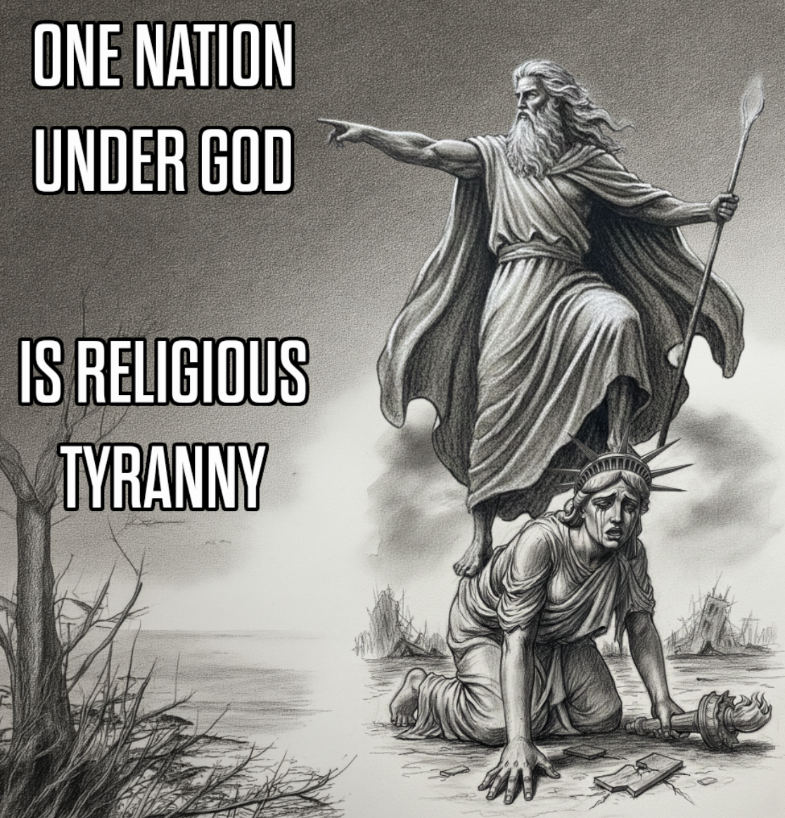 One Nation Under God means a Christian totalitarian government that crushes liberty under its heel in the name of the Christian god.