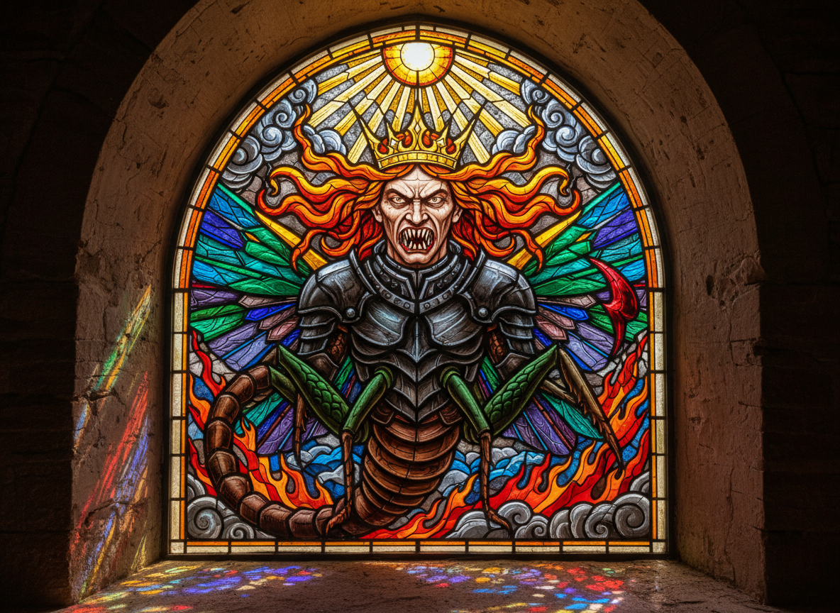 The Bible’s description of these monsters is flamboyant and bizarre: They look like horses prepared for battle. On their heads, they have crowns made of gold. The torture locusts have men’s faces but women’s hair. Their teeth are like the teeth of lions. The monsters wear iron armor around their enormous arthropod bodies, and the sound of their insect wings is tremendous, like the sound of chariots or warhorses rushing to battle. They possess scorpions’ tails, with venom that exists only to cause people pain.