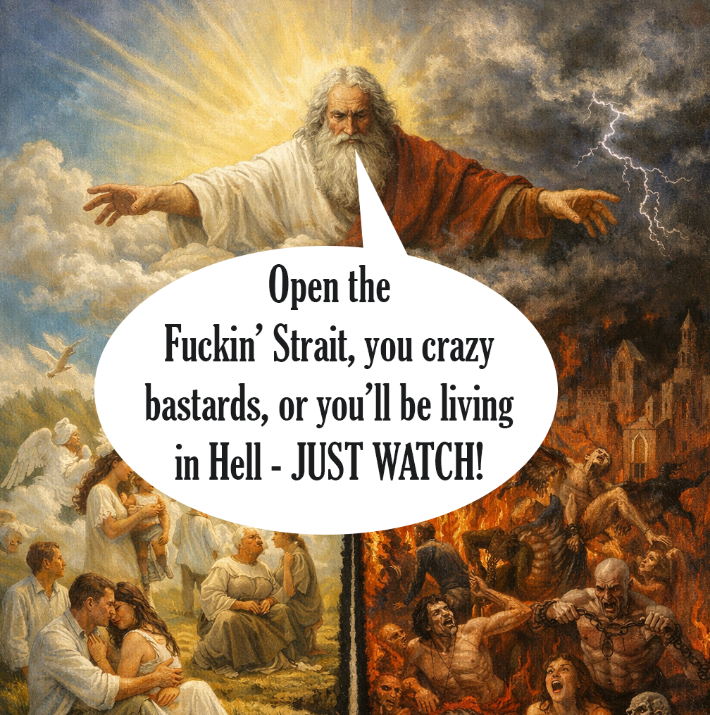 In the last few days, Donald Trump has invoked Hell twice, in capital letters, H-E-L-L, not lowercase H, but uppercase H Hell, which refers to something that was an invention of Jesus.