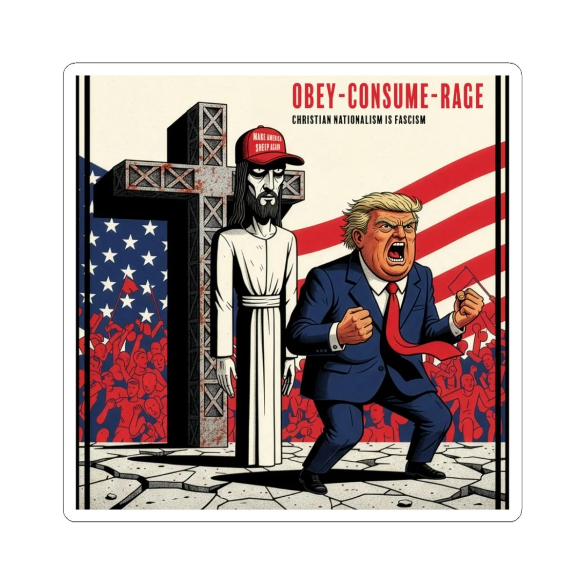 Store Store Clear Buttons | Filters Categories Select a Category Buttons Filter Clear Filter Political Protest Pin Button — "When You Mix Church and State, Fascism Is the Inevitable Result" $5.99 Add To Cart Added! Political Protest Sticker — "OBEY • CONSUME • RAGE" Anti-Fascism Trump Illustration (Kiss-Cut) $4.99 Add To Cart Added! No results found No results match your search. Try removing a few filters.